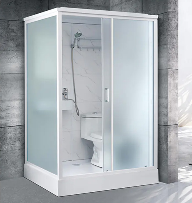 The front door contains the toilet, the front door does not contain the toilet, the side door contains the toilet, and the side door does not contain the toilet